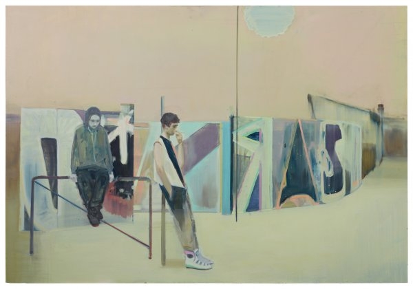 The cityscapes of Eric Keller painted on wooden plates seem timeless. An undercooled film set, a different world, in which the few protagonists seem to be as inflexible as in film stills. Indeed Eric Keller’s images speak of anonymity, loneliness, the lack of communication and isolation. The cityscapes announce the sheer absence of human beings as if the world stands still. The strange, the aloofness, the eerie is underlined by the artist via the used pallet of colours. Put onto large surfaces, the earthy colours communicate from further away a supposed idyll, at a closer glance the colours seem to hide behind a fogbank. The eye is guided quickly towards a small but loud field of magenta or neon green, colours that are unnatural and thus make the viewer shiver. Nevertheless the depicted situations take hold oft he viewer and make him or her quiz why one cannot and does not want to escape this artificial world anymore.