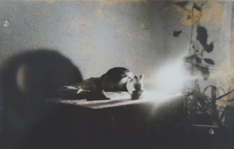In her work, Gloria Luca attempts to metaphorically express certain aspects of the human psychological dimension. The Future Anterior photo installation deals with one's personal identity. It is composed of three black and white photographs and a text, which is also reminiscent of a photograph by its placement within a photo frame and also because it looks like a movie shot, with a white subtitle on a black background. To understand the work, it is important to be aware that two of the photographs come from a family album and capture the author herself as a child; the third photo is a staged self-portrait. The text then poetically explains the author's idea that identity is not something firm and unchangeable but is an "active principle" (C.G. Jung), i.e. formed by every decision we make. The second work — Unsqure Black video with the artist herself performing in her studio — continues the previous work by its black and white rendition as well as its contents. Rubik's Cube serves as a symbol of a colourful world where we are able to solve problems, while its black version expresses a burdensome hopeless situation, in which we find ourselves as if in a mental trap. (mf)