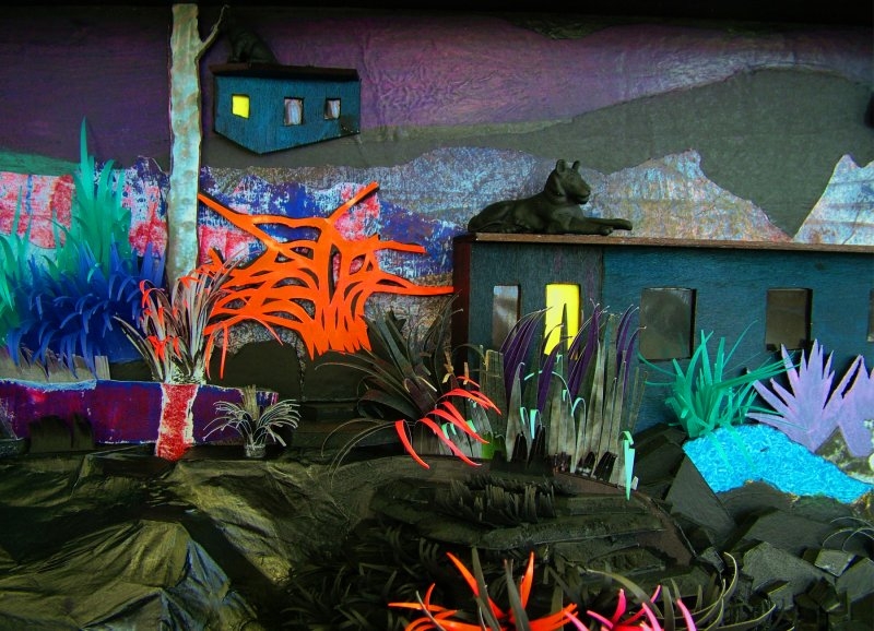 Historical truth, national identity, and identity – these are the themes that form the framework of Marina Sztefanu’s explorations. The impulse for her diploma work came from an accidentally discovered family photograph, hitherto unknown to the artist, depicting parents with four children and a leopard skin in the background. The photograph was taken sometime between 1910 and 1920, somewhere between Djibouti and Addis Ababa, east Africa, where the artist’s great-grandfather worked as the stationmaster of the local railway network. The artist’s grandfather had just spent ten years of his life romping about the African savannah with the children of Greeks, Frenchmen, Italians and Africans, an early experience which would become the wellspring of a plethora of family myths and fantasies – the children of various nations playing together despite their differences, prancing about amongst giraffes and ostriches, under the rosy glow of the African sunset. These reminiscences and stories formed a grandiose multicultural scenario. The artist approaches it in her diploma work within the framework of general and anthropologically verifiable context, with the ambition of substantiating her personal belief that society can function based on the principles of multiculturalism. The landscape décor and scale models in her installation have the power to evoke diverse worlds and create connections between these locations and utopias which are independent of time and space. Instead of false pathos and making history and historical truth suit one’s own ends, the artist offers, in the active space of sloped surface, a space for assimilation and integration. In terms of form, she does not define either the horizon or perspective – the space is mutable and undefined in shape, but in spite of the figures struggling for balance, as a whole it appears harmonious. The work has no didactic or narrative ambitions, but instead offers an opportunity for contemplation, to be confronted through observation, to travel mentally in one’s imagination.